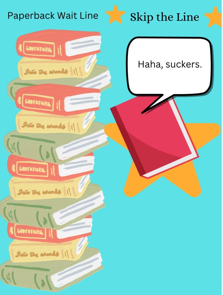 However, this price benefit may be soon running out due to- you guessed it- inflation. Adult paperback books now typically are $20 or more- that’s the price of a hardcover in the YA or middle grade categories. This is possibly the most ridiculous part of book inflation- especially because paperbacks are way less durable due to their paper covers. Add that to the fact that a hardcover version of a paperback original is most likely to not exist, and if it does it’s most likely only available to libraries (and if you get lucky, a paperback original will be popular enough to get an expensive collector’s edition in hardcover a few years later), and what seems like a cost-friendly option for books soon becomes less effective.